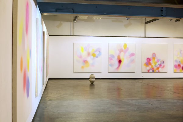 Während die „Licht“ Bilder wie von einem inneren Licht durchdrungen den Betrachter mit einer scheinbar leeren Bildmitte konfrontieren, entspringen dem Bildraum der „arising colors“ leuchtende Farbpunkte, die eine lebendige Fülle entstehen lassen. Eine Fülle, in der der einzelne Punkt in Beziehung zu den anderen steht, um ein Feld voller potenzieller Möglichkeiten zu