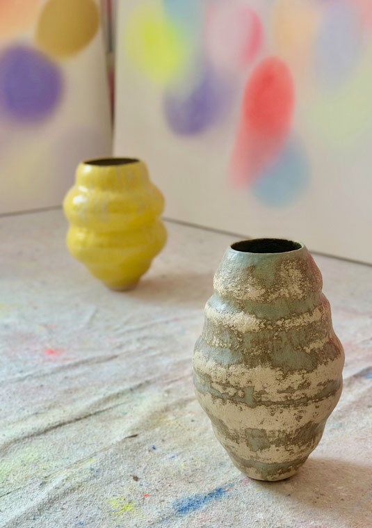 Es entstehen neben der Malerei der „Arising Colors“ auch keramische Gefäßobjekte.